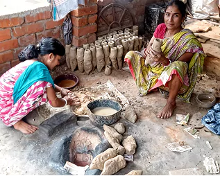 Crafting The Base: Black mud and rice husk form the statue's base, ensuring a sturdy foundation for the detailed artwork.