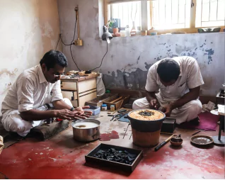 Our Dhokra art pieces are crafted using black mud, rice husk, beeswax, green bean leaves, and metals like brass, ensuring authenticity, uniqueness and sustainability in every creation.