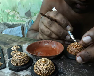 Dhokra handcrafted products derive their name from the Dhokra Damar tribes of West Bengal and Odisha. This traditional metal casting art form has been practised for over 4,000 years, tracing its roots back to the Indus Valley Civilization. Historically, Dhokra artists travelled from village to village, selling their exquisite artefacts of Hindu deities in exchange for food.