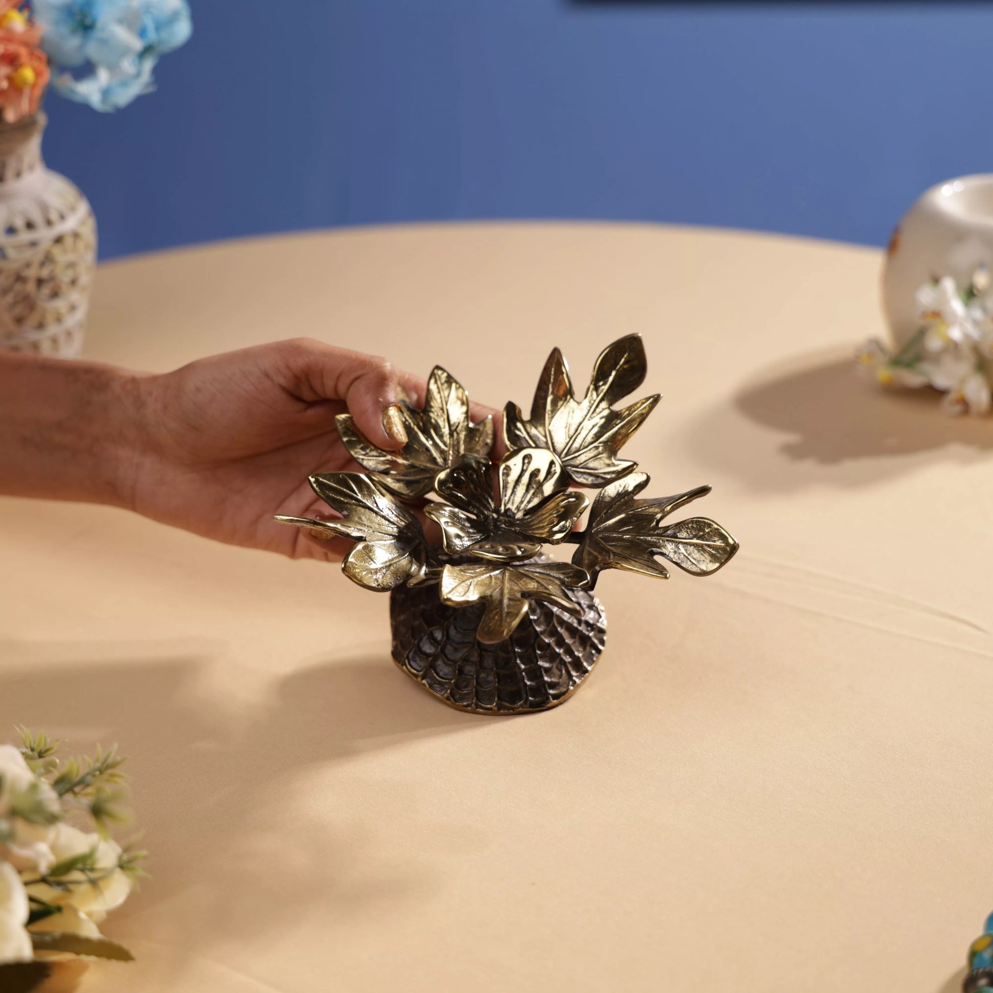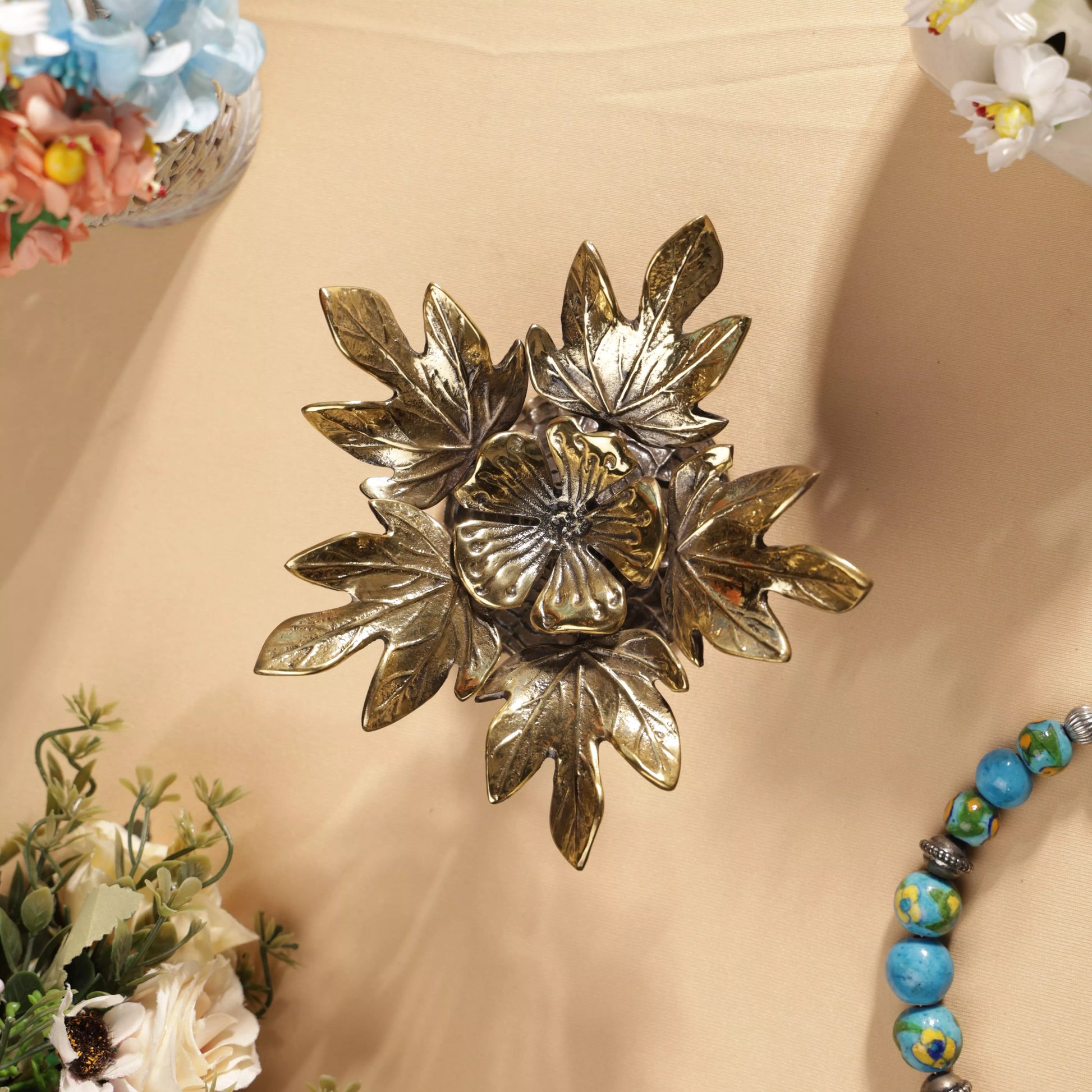 Antique Finish Brass Flower With Maple Leaves Table Decor