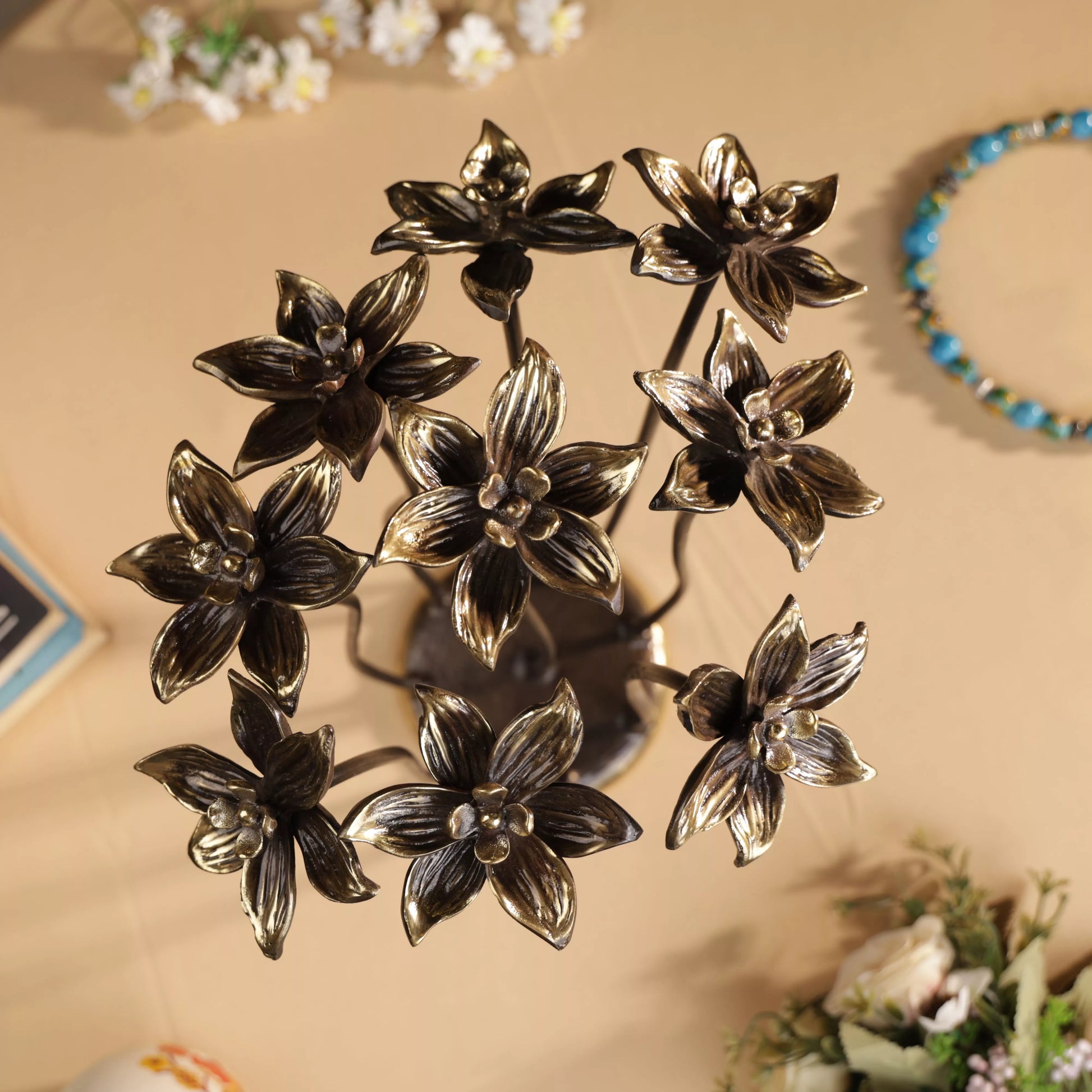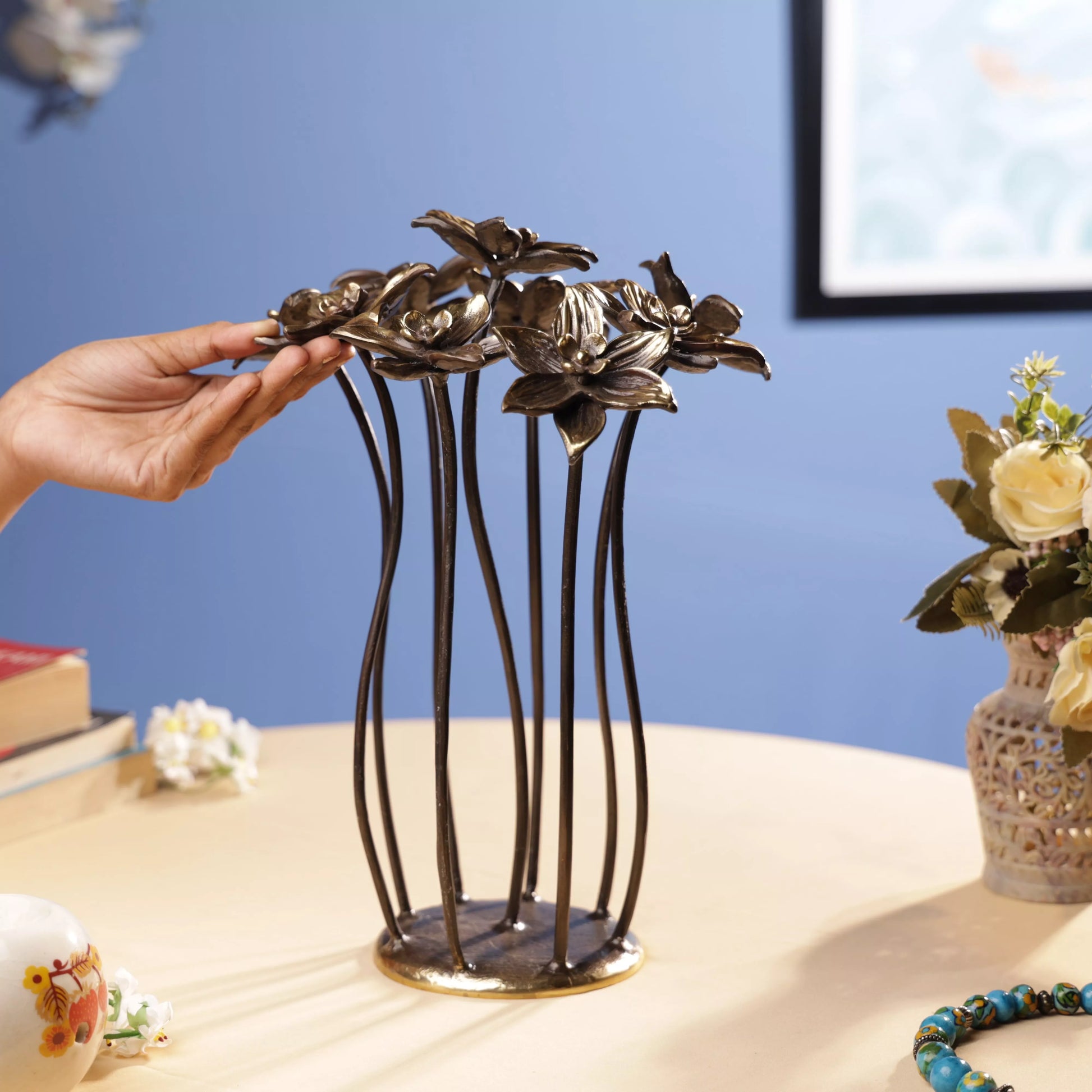 This artistic décor accent showcases a cluster of lotus flowers crafted in solid brass, arranged like a blooming bouquet and finished in a warm antique tone for added depth. The textured petals, slender stems, and handcrafted detailing create a refined decorative piece ideal for centre tables, consoles, shelves, and peaceful corners of the home.