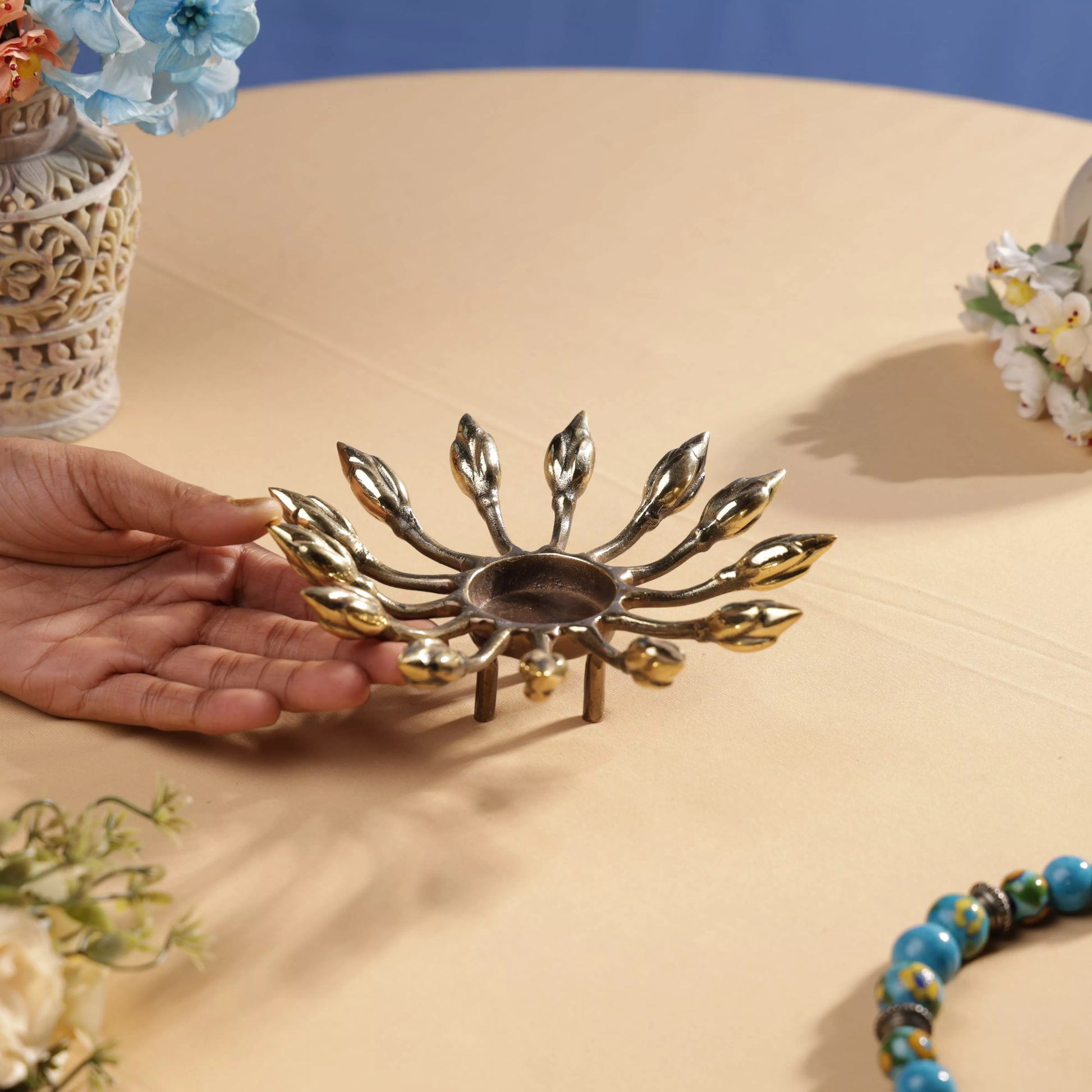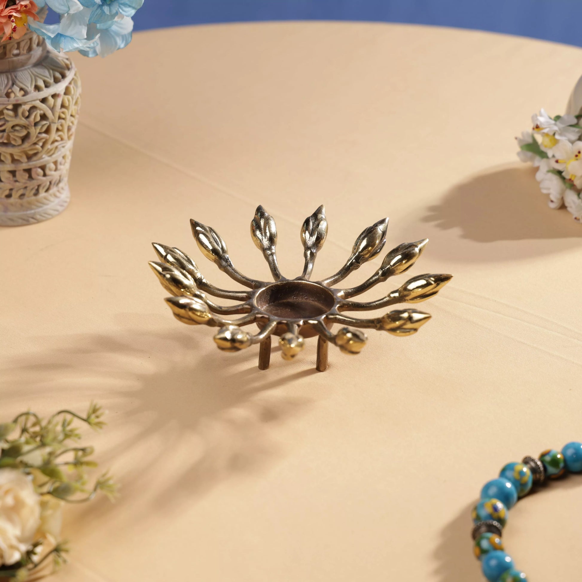 Antique Finish Brass Lotus Buds T-Light Holder