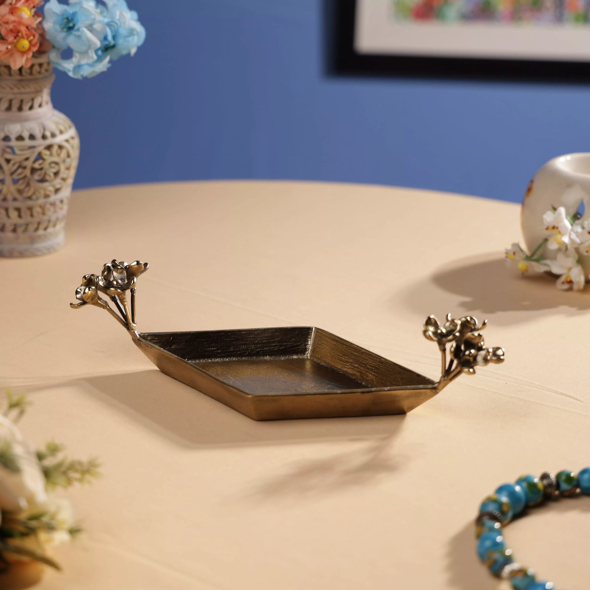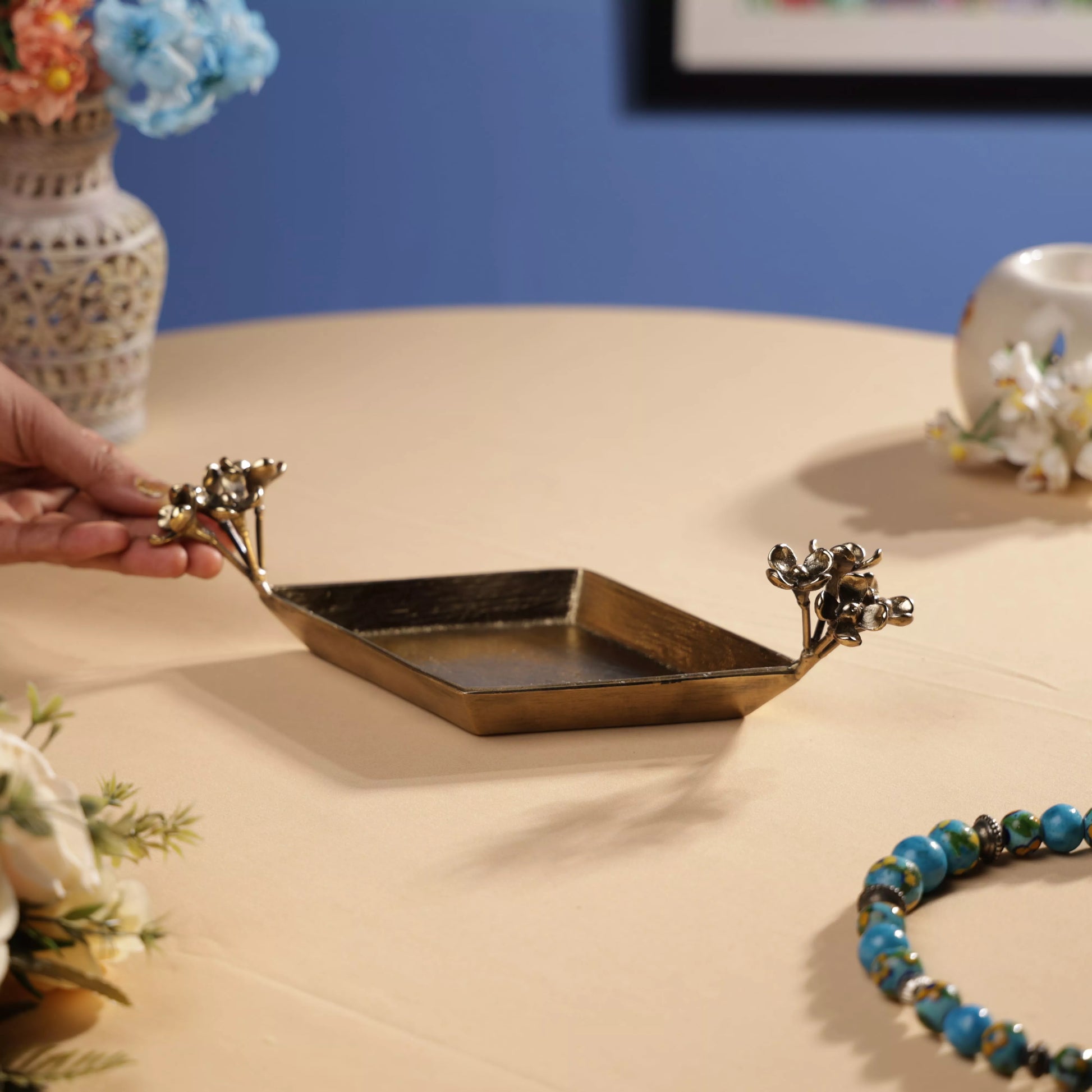 Antique Finish Brass Pulmeria Flower Edged Rhombus Platter