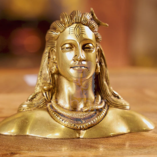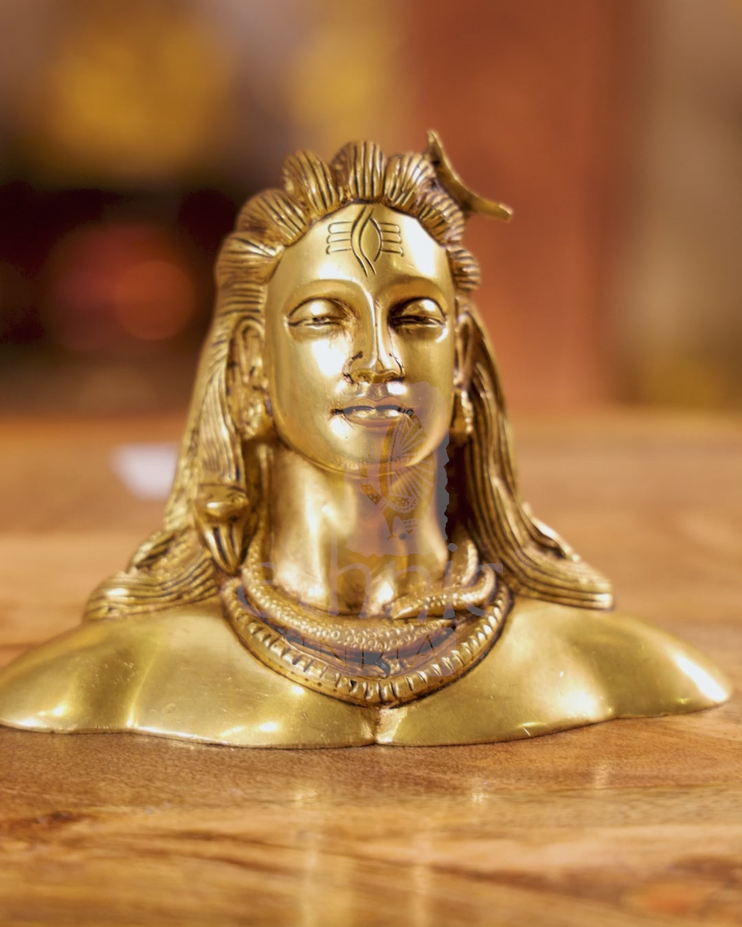 This Adiyogi Lord Shiva Bust statue is handcrafted using premium brass and embodies divine strength, positivity, and auspiciousness.