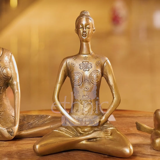 This brass yoga lady set features three graceful poses, symbolising mindfulness, balance, and inner strength—ideal for table or shelf decor.