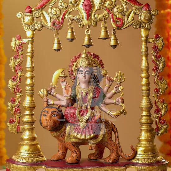 Coloured-Brass Maa Durga Idol With Temple Arch